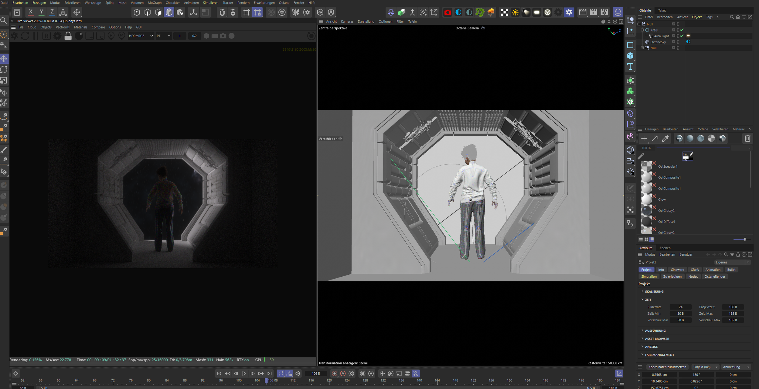 I modeled the entire corridor in Blender. I think (for myself) modeling in Blender is way more intuitive and fun. Since the texturing takes place in Cinema4D (Octane) or Substance thats no problem.